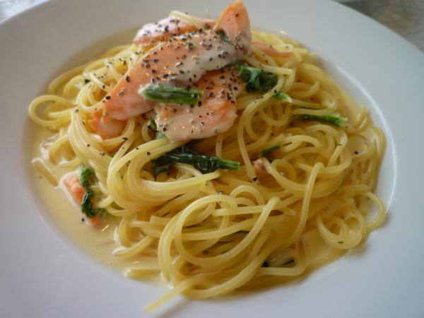 スモークサーモンとほうれん草のパスタ